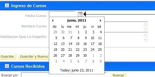 1. Seleccione la fecha en la que recibió el curso, Ver uso de calendario