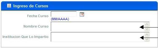 2. ingrese el nombre de curso y la institución en que ha recibido el curso.