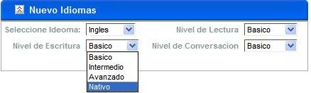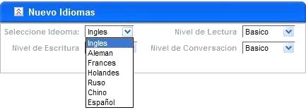 4. En el control de idioma se puede visualizar los idiomas seleccionados.
