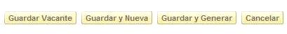 11. De clic en el (guardar vacante) para solo almacenar la vacante, el botón(guardar y nueva) almacena la vacante ingresada y puede ingresar otra nueva vacante, botón (guarda y generar) almacena la vacante y genera los candidatos, botón (cancelar).