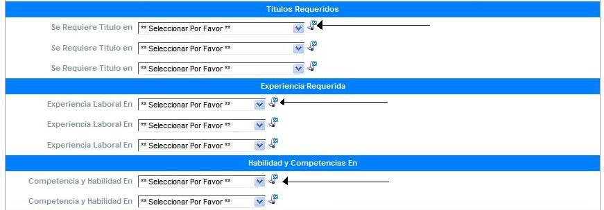 7. ingrese los (el) titulo, experiencia, habiliada y competencia (s) que debe tener la persona que quiera aplicar a la vacante.