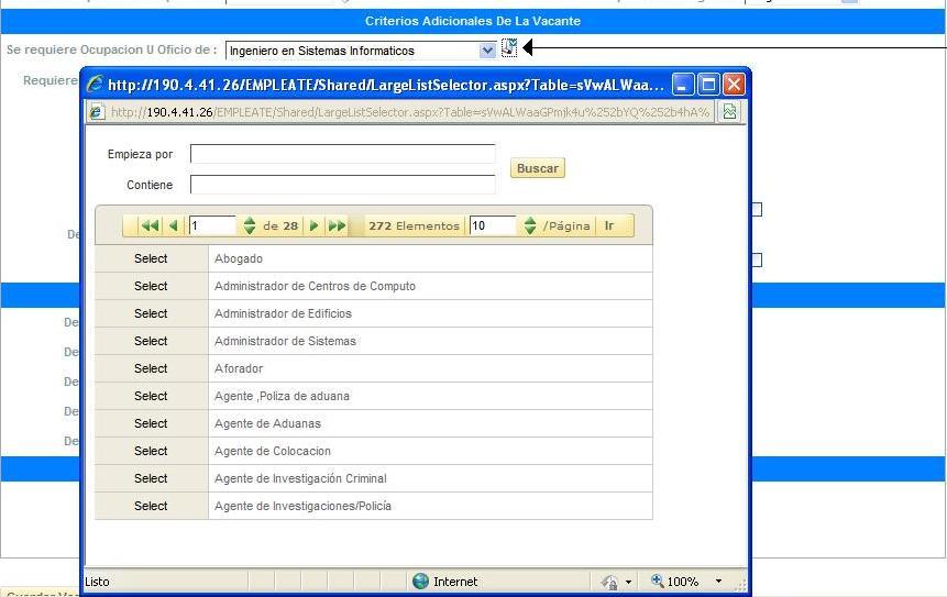 8. Escriba la ocupación u oficio que desea buscar, aparecerá una lista de las ocupación que busca (ver imagen).